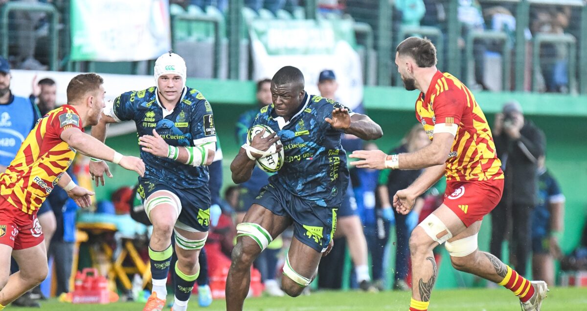 Perpignan: 15 Mayron Fahy (62′ Tavite Veredamu), 14 Eneriko Buliruarua, 13 Alivereti Duguivalu, 12 Job Poulet, 11 Lucas Dubois, 10 Hugo Reus (66′ Gabin Kretchmann), 9 Gela Aprasidze (59′ James Hall); 8 Andro Dvali, 7 Max Hicks (62′ Simon Taty), 6 Mahamadou Diaby, 5 Bastien Chinarro (69′ Davit Lagvilava), 4 Peceli Yato (, 3 Akato Fakatika (45′ Pietro Ceccarelli), 2 Sama Malolo (45′ Mathys Lotrian), 1 Bruce Devaux (69′ Lorencio Boyer Gallardo). Head Coach: Laurent Labit.